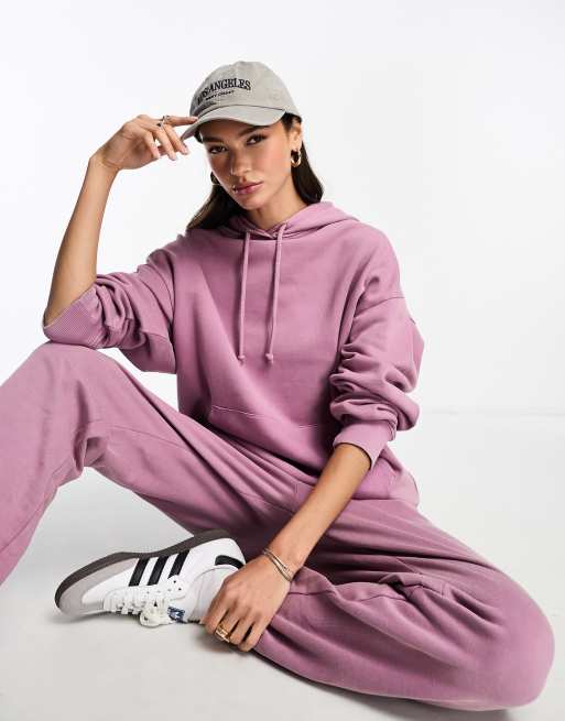 ASOS DESIGN - Oversized hættetrøje i auberginefarvet vask - Del af sæt