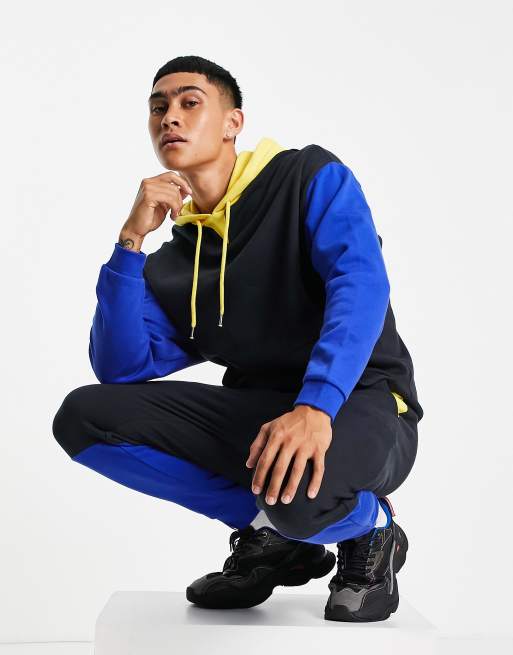 ASOS DESIGN - Oversized hættetrøje med klare farveblokke og print - Del af sæt