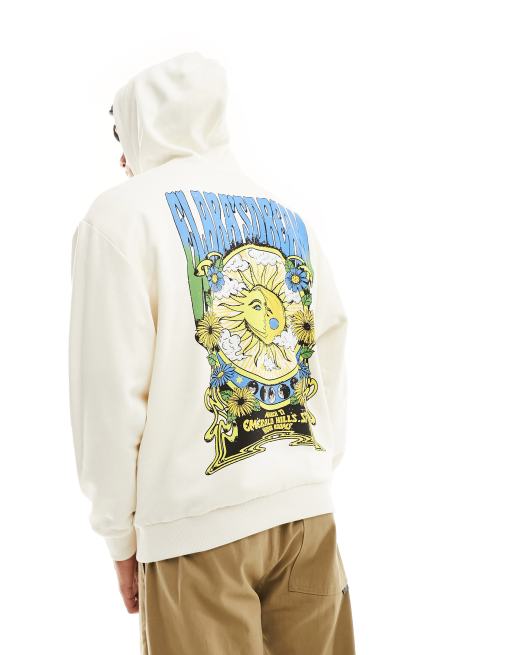 ASOS DESIGN - Oversized hættetrøje med stort solprint på ryggen i råhvid