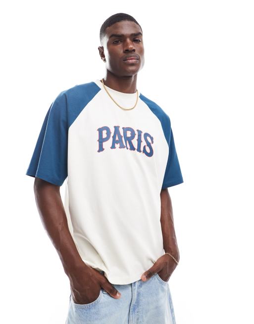 ASOS DESIGN - Oversized hvid og blå T-shirt med byprint foran i firkantet pasform