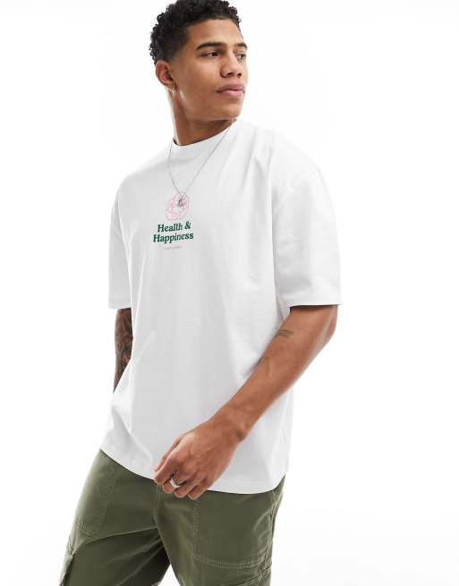 ASOS DESIGN - Oversized hvid T-shirt med brystprint