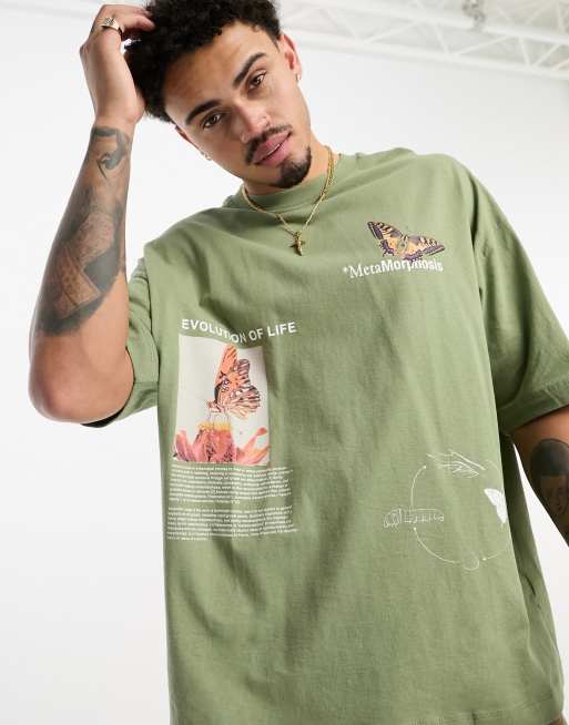 ASOS DESIGN - Oversized kakigrøn T-shirt med flere sommerfugleprint på brystet