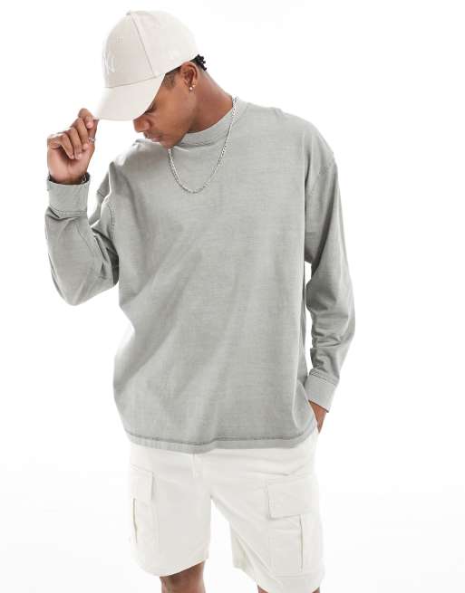 ASOS DESIGN - Oversized langærmet T-shirt i vasket grøn