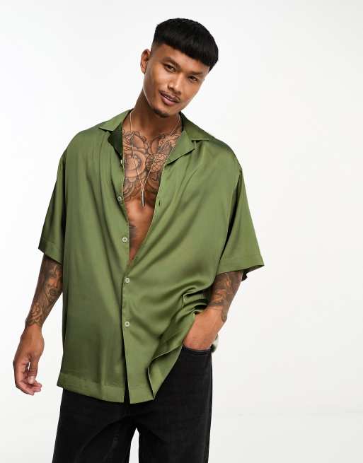 ASOS DESIGN - Oversized longline-skjorte i kakigrøn satin