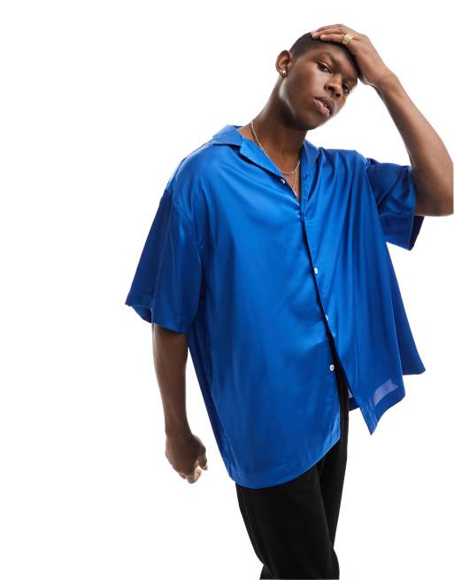 ASOS DESIGN - Oversized longline-skjorte i koboltblå satin