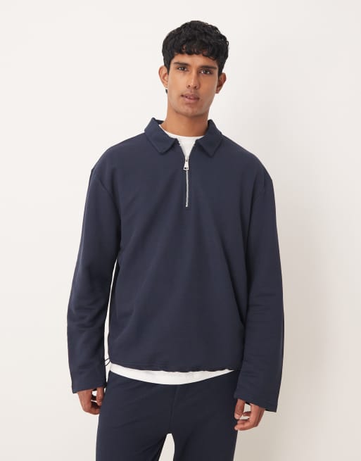 ASOS DESIGN - Oversized marineblå poloskjorte med halv lynlås - Del af sæt