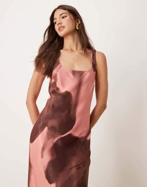 ASOS DESIGN - Oversized maxikjole i satin med dyb og rund hals og stort blomsterprint