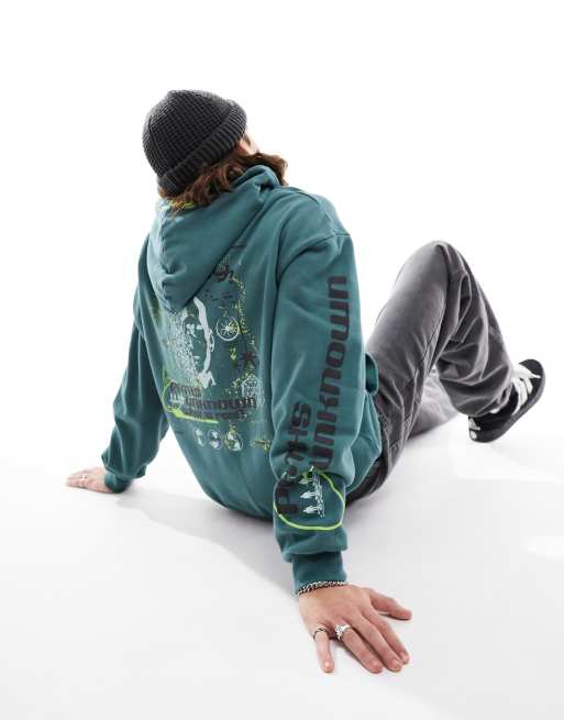ASOS DESIGN - Oversized og grøn hættetrøje med stort rygprint og hættebroderi