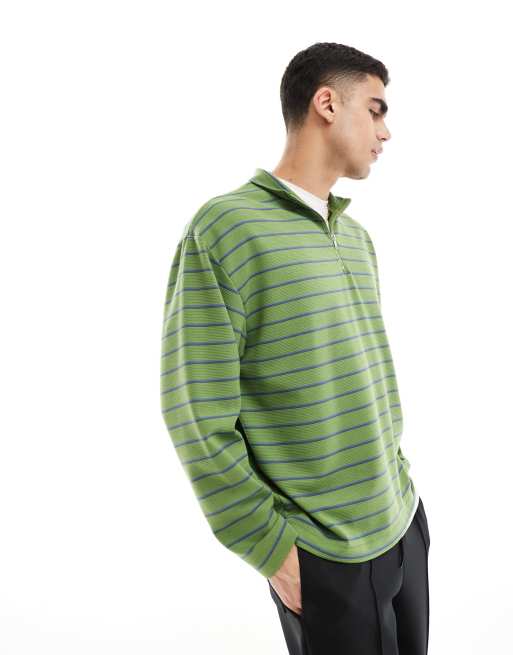 ASOS DESIGN - Oversized og grøn sweatshirt med kort lynlås og striber