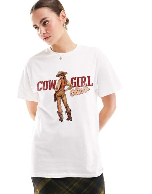 ASOS DESIGN - Oversized og hvid T-shirt med grafisk 'Cowgirl Club'-print