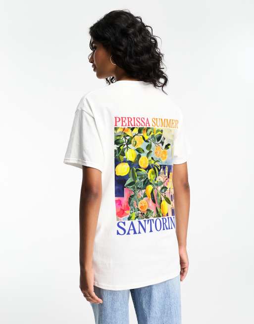 ASOS DESIGN - Oversized og hvid T-shirt med "Santorini"-grafik