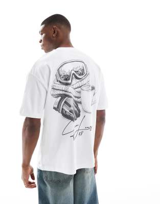ASOS DESIGN - Oversized og hvid T-shirt med skigrafik