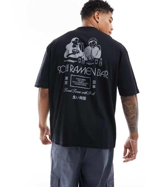 ASOS DESIGN - Oversized og sort T-shirt med ramen-print på ryggen