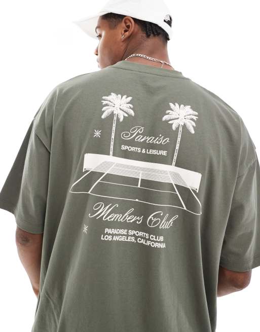 ASOS DESIGN - Oversized olivengrøn T-shirt med tennisprint på ryggen