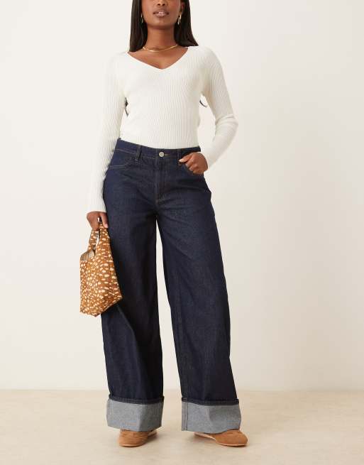 ASOS DESIGN - Oversized posede boyfriend-jeans med opsmøget kant i skyllet vask