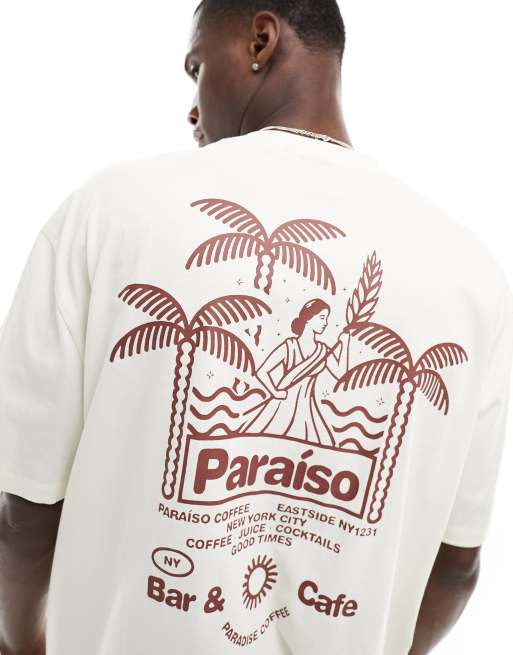 ASOS DESIGN - Oversized råhvid T-shirt med palmeprint på ryggen