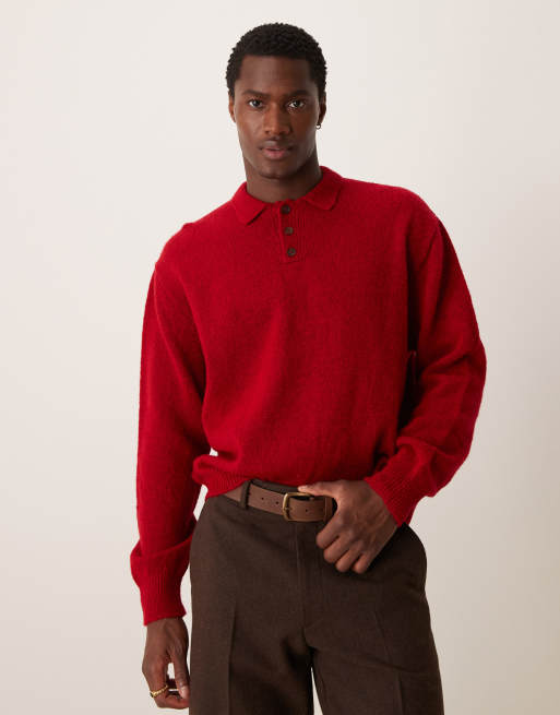 ASOS DESIGN - Oversized rød striktrøje i firkantet pasform med børstet tekstur