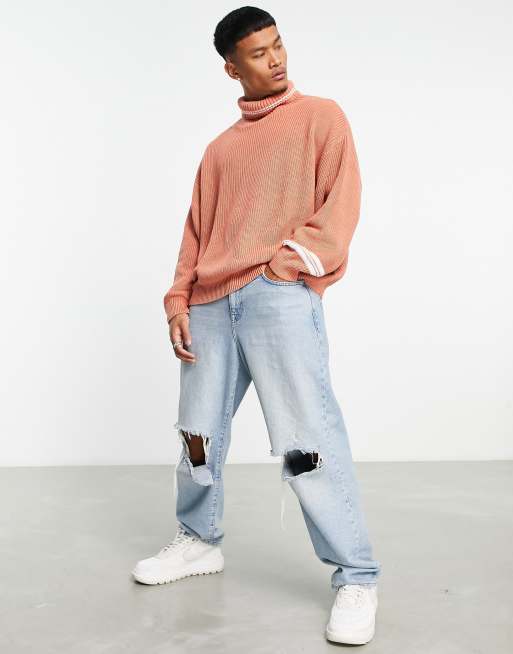 ASOS DESIGN - Oversized ribstrikket fiskertrøje med stribet design i abrikos