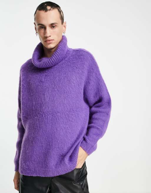 ASOS DESIGN - Oversized rullekravebluse i lilla, vamset strik