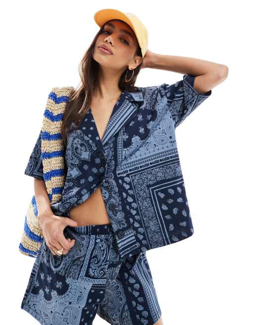 ASOS DESIGN - Oversized skjorte med bandanaprint i marineblå - Del af sæt