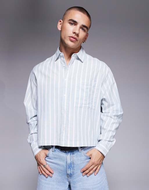 ASOS DESIGN - Oversized skjorte med hvide/blå striber i firkantet pasform