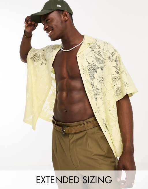 ASOS DESIGN - Oversized skjorte med reverskrave og blonder i gul i firkantet pasform