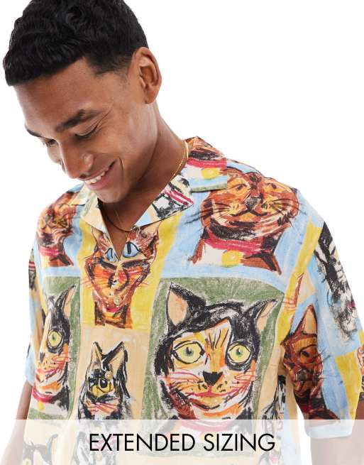 ASOS DESIGN - Oversized skjorte med reverskrave og skitseret katteprint