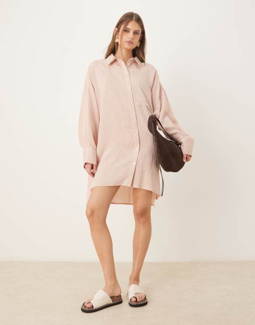 ASOS DESIGN - Oversized skjortekjole i poplin med striber - Del af sæt