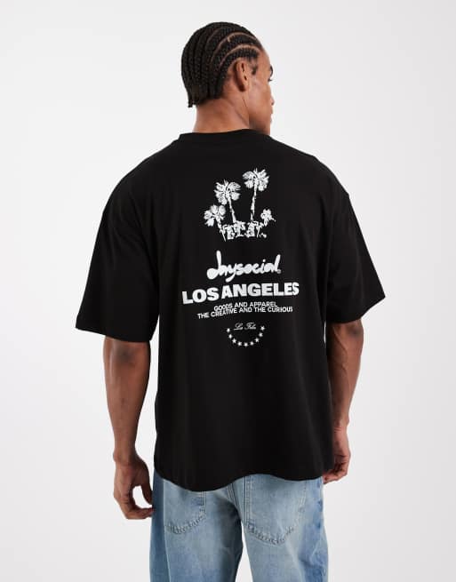 ASOS DESIGN - Oversized sort T-shirt med blomsterprint på brystet
