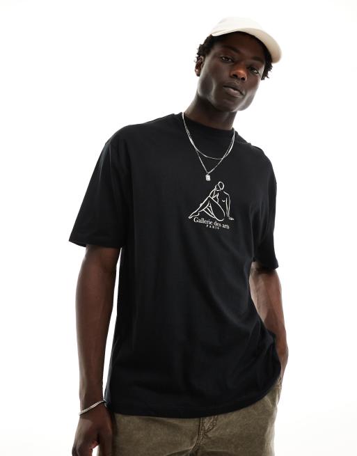 ASOS DESIGN - Oversized sort T-shirt med tegnet print