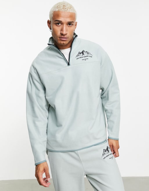 ASOS DESIGN - Oversized sæt i grøn polar-fleece med sweatshirt & joggingbukser med bjergprint
