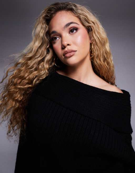 ASOS DESIGN - Oversized, strikket og sort offshoulder-trøje