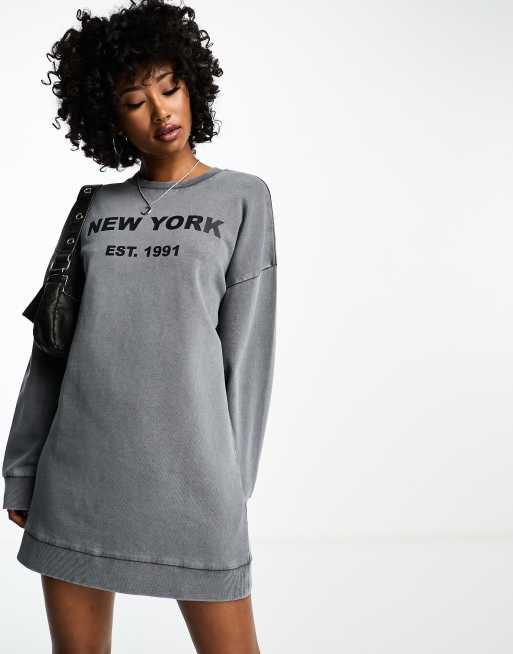 ASOS DESIGN - Oversized sweatshirt-kjole med 'New York'-grafik i koksgrå