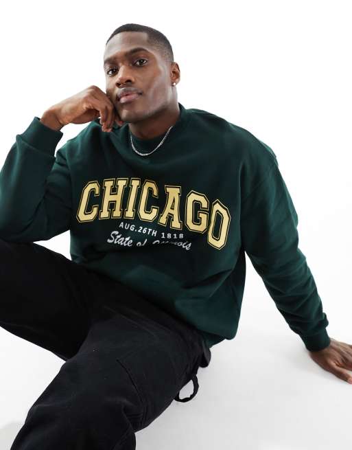 ASOS DESIGN - Oversized sweatshirt med byprint i mørkegrøn