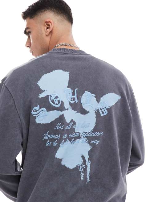 ASOS DESIGN - Oversized sweatshirt med tekstprint i forvasket grå