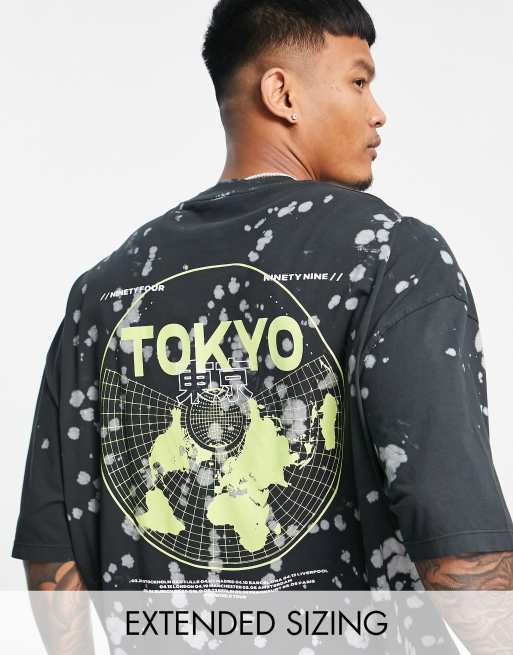 ASOS DESIGN - Oversized T-shirt i grå batik med street-print på ryggen