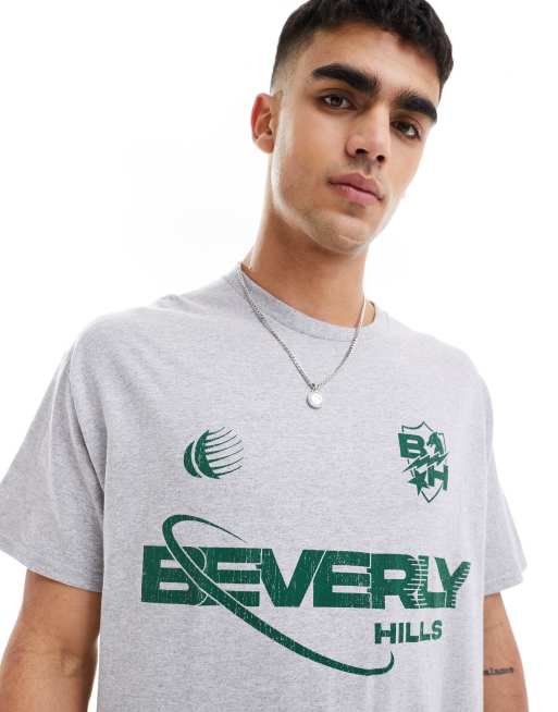 ASOS DESIGN - Oversized T-shirt i gråmelering med Beverly Hills-print