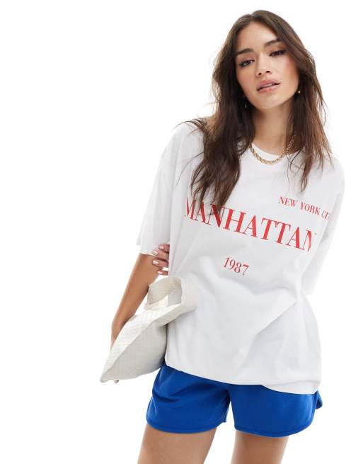 ASOS DESIGN - Oversized T-shirt i hvid med Manhattan-grafik