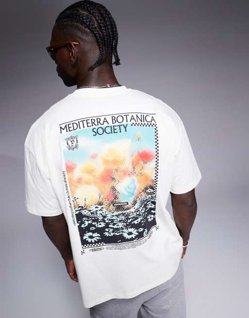 ASOS DESIGN - Oversized T-shirt med botanisk print på ryggen i råhvid