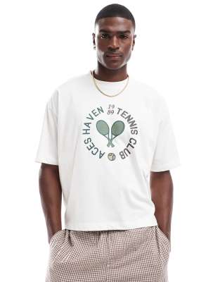 ASOS DESIGN - Oversized T-shirt med byprint foran i råhvid i firkantet pasform