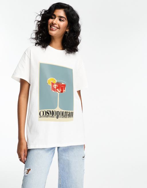 ASOS DESIGN - Oversized t-shirt med 'cosmopolitan'-cocktailgrafik i hvid
