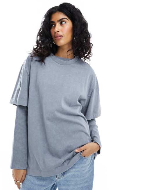 ASOS DESIGN - Oversized T-shirt med dobbeltlag i grå vask