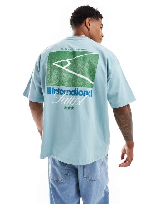 ASOS DESIGN - Oversized T-shirt med fodboldprint på ryggen i blå