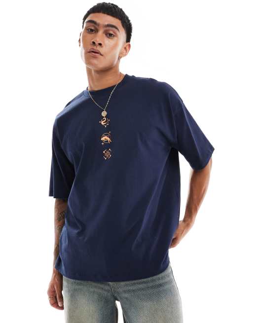 ASOS DESIGN - Oversized T-shirt med kosmisk print foran i marineblå