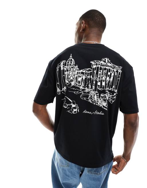 ASOS DESIGN - Oversized T-shirt med landskabsprint på ryggen i sort