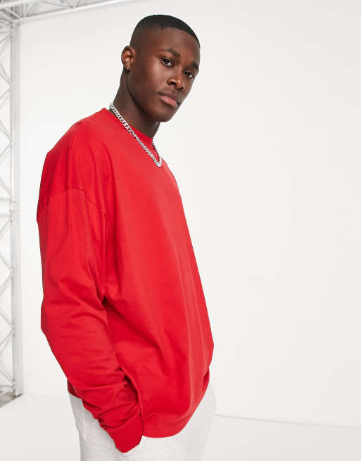 ASOS DESIGN - Oversized T-shirt med lange ærmer i rød