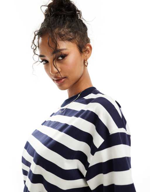 ASOS DESIGN - Oversized T-shirt med marineblå og hvide striber