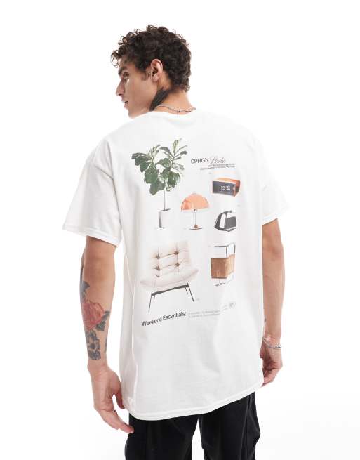 ASOS DESIGN - Oversized T-shirt med møbelprint på ryggen i hvid