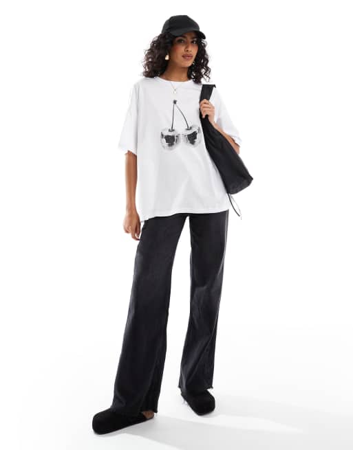 ASOS DESIGN - Oversized T-shirt med print med kirsebær og discokugle i hvid