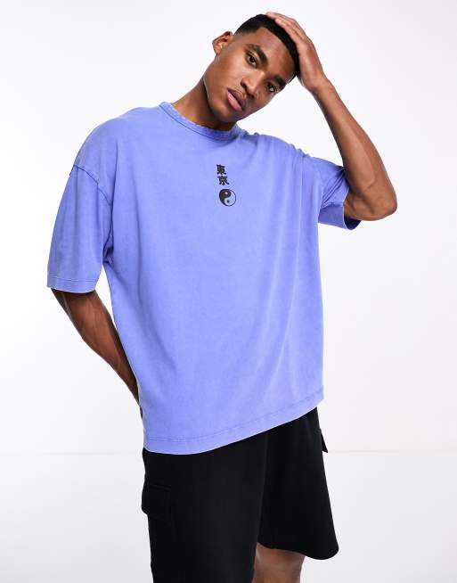 ASOS DESIGN - Oversized T-shirt med print på brystet i kraftigt stof på 220 gsm i vasket blå